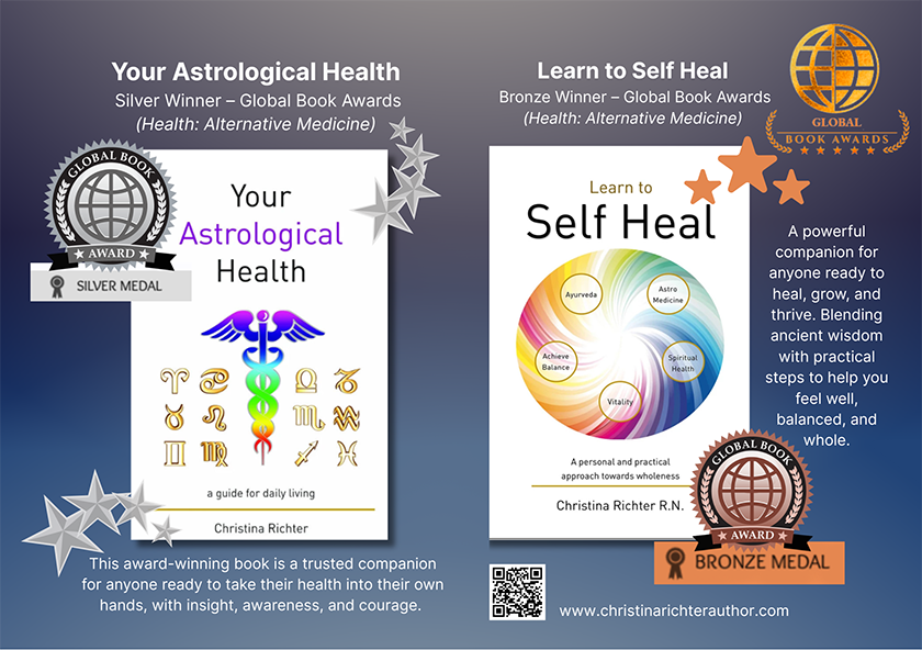 Your Astrological Health and Learn to Self Heal bridge modern medicine with ancient wisdom. Through decades of study and practical experience, Christina helps readers understand the deeper connections between their body, mind and birth chart, offering a practical path to self-healing and balance in everyday life.